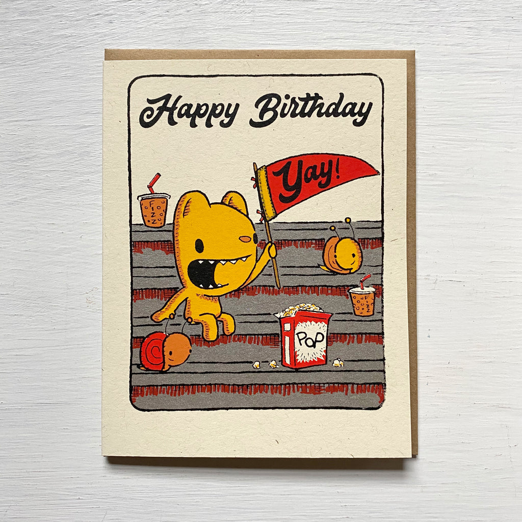 All of our greeting cards are hand screen printed by us and feature our hand drawn illustrations. We mix all the inks and print them one by one in our studio. Due to their handmade nature, there may be slight variations between the item pictured and the one you receive.