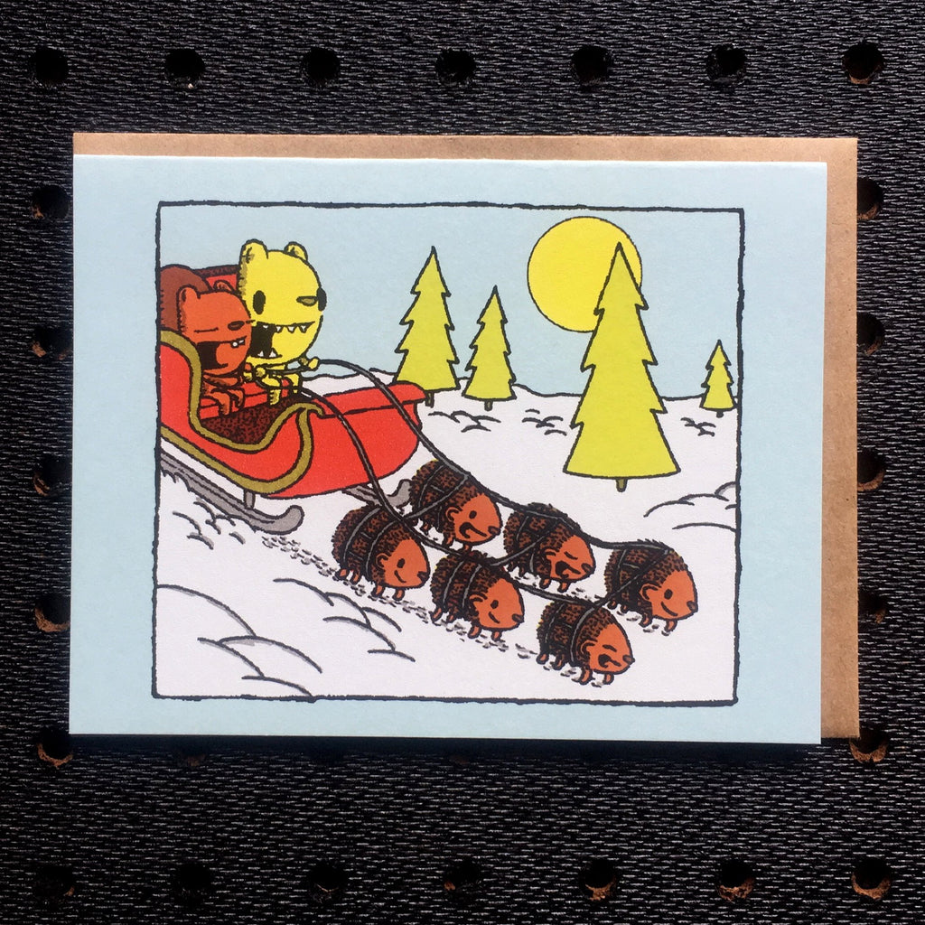 All of our greeting cards are hand screen printed by us and feature our hand drawn illustrations. We mix all the inks and print them one by one in our studio. There may be very slight variations between the item pictured and the one you receive.